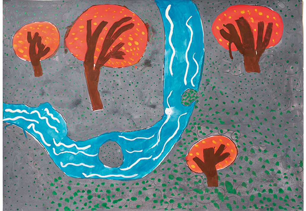 秋の紅葉の景色をかきました